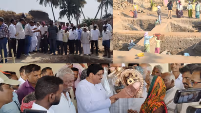 ಗದಗ (ಫೆ.05): ಐತಿಹಾಸಿಕ ಲಕ್ಕುಂಡಿ ಗ್ರಾಮದ ಕೋಟೆ ವೀರಭದ್ರೇಶ್ವರ ದೇವಸ್ಥಾನದ ಆವರಣದಲ್ಲಿ ನಡೆಯುತ್ತಿರುವ ಉತ್ಖನನ ಕಾರ್ಯವು ಇಡೀ ರಾಜ್ಯದ ಗಮನ ಸೆಳೆದಿದೆ. ಈ ಹಿನ್ನೆಲೆಯಲ್ಲಿ ಬಾಗಲಕೋಟೆ ಲೋಕಸಭಾ ಕ್ಷೇತ್ರದ ಸಂಸದರಾದ ಪಿ.ಸಿ. ಗದ್ದಿಗೌಡರ್ ಅವರು ಗುರುವಾರ ಉತ್ಖನನ ಸ್ಥಳಕ್ಕೆ ಭೇಟಿ ನೀಡಿ ಪರಿಶೀಲನೆ ನಡೆಸಿದರು. ಈ ವೇಳೆ ಲಕ್ಕುಂಡಿ ಗ್ರಾಮದಲ್ಲಿ ಸಿಕ್ಕಿದ್ದ ಬಂಗಾರದ ನಿಧಿಯನ್ನು ಸರ್ಕಾರಕ್ಕೆ ಒಪ್ಪಿಸಿದ್ದ ಕುಟುಂಬವನ್ನು ಭೇಟಿ ಮಾಡಿ 'ನೀವು ನಿಧಿ ನೀಡಿದ್ದೀರಿ, ಮರುಗಬೇಡಿ ಎಂಬ ಭಾವನಾತ್ಮಕ ಬೆಂಬಲ' ನೀಡಿದ್ದಾರೆ.
