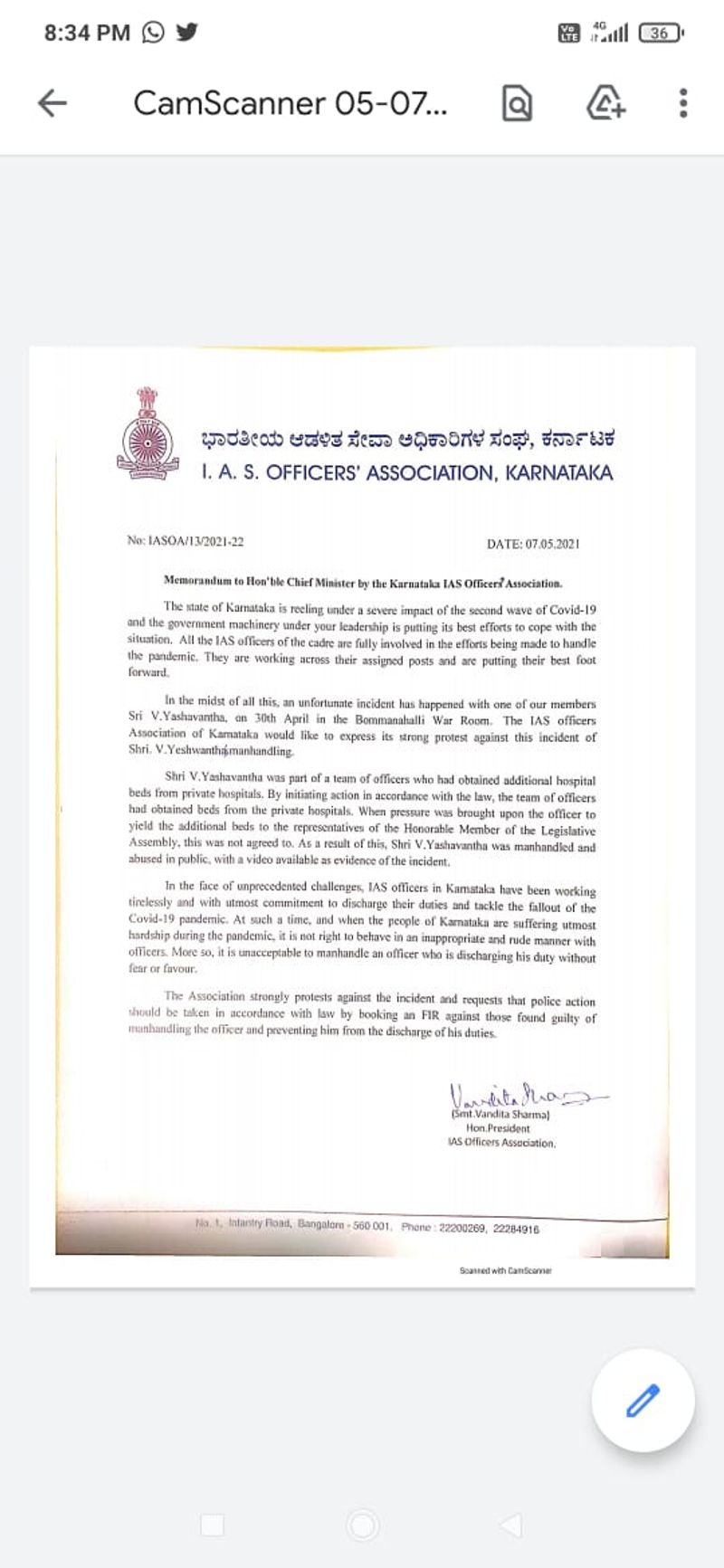 ಬಿಬಿಎಂಪಿ ವಾರ್ ರೂಂನಿಂದಲೇ ಬೆಡ್ ಬುಕಿಂಗ್ ದಂಧೆ ನಡೆಯುತ್ತಿದೆ ಎಂಬುದು ದೊಡ್ಡ ಸುದ್ದಿಯಾಗಿತ್ತು. ಜನಪ್ರತಿನಿಧಿಗಳು ವಾರ್ ರೂಂಗೆ ಭೇಟಿ ನೀಡಿದ್ದ ವೇಳೆ ವಾಘ್ವಾದ ನಡೆದಿತ್ತು. ಅಲ್ಲಿನ ಜವಾಬ್ದಾರಿ ಹೊತ್ತುಕೊಂಡಿದ್ದ ಐಎಎಸ್ ಅಧಿಕಾರಿ ವಿ. ಯಶವಂತ್ ಅವರ ಮೇಲೆ ದೌರ್ಜನ್ಯವಾಗಿದ್ದು ಸಂಘ ಘಟನೆಯನ್ನು ಖಂಡಿಸಿದೆ.