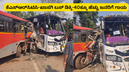 ಉತ್ತರ ಕನ್ನಡ (ಏ.03): ಜಿಲ್ಲೆಯ ಶಿರಸಿ-ಕುಮಟಾ ರಾಷ್ಟ್ರೀಯ ಹೆದ್ದಾರಿಯಲ್ಲಿ ಭೀಕರ ರಸ್ತೆ ಅಪಘಾತ ಸಂಭವಿಸಿದೆ. ಕೆಎಸ್ಆರ್ಟಿಸಿ (KSRTC) ಮತ್ತು ಖಾಸಗಿ ಬಸ್ ನಡುವೆ ಸಂಭವಿಸಿದ ಮುಖಾಮುಖಿ ಡಿಕ್ಕಿಯಲ್ಲಿ 40ಕ್ಕೂ ಹೆಚ್ಚು ಪ್ರಯಾಣಿಕರು ಗಾಯಗೊಂಡಿರುವ ಘಟನೆ ಶಿರಸಿ ಗ್ರಾಮೀಣ ಪೊಲೀಸ್ ಠಾಣಾ ವ್ಯಾಪ್ತಿಯಲ್ಲಿ ನಡೆದಿದೆ.