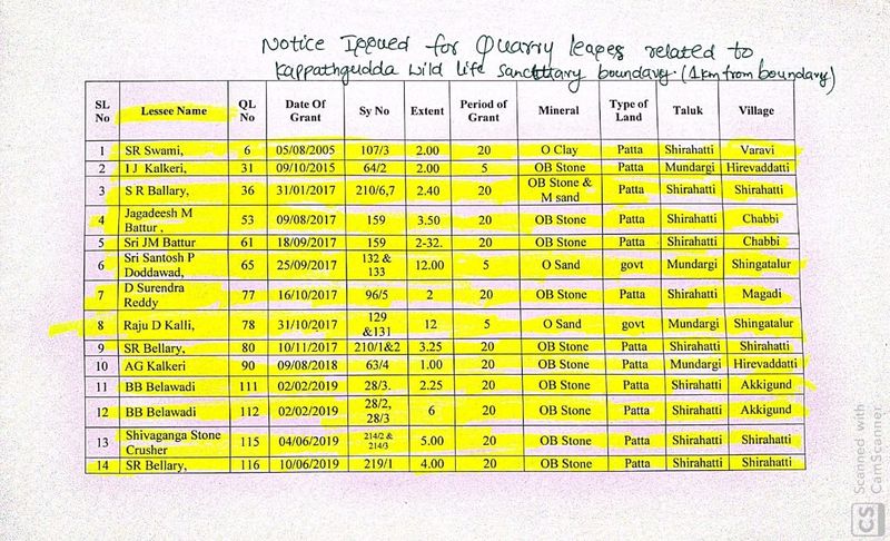 ಜಿಲ್ಲೆಯ ಶಿರಹಟ್ಟಿ ಹಾಗೂ ತಾಲೂಕಿನ ವರವಿ, ಛಬ್ಬಿ, ಮಾಗಡಿ, ಅಕ್ಕಿಗುಂದಿ, ಮುಂಡರಗಿ ತಾಲೂಕಿನ ಹಿರೇವಡ್ಡಟ್ಟಿ, ಸಿಂಗಟಾಲೂರು ವ್ಯಾಪ್ತಿಯ ವನ್ಯಜೀವಿಧಾಮದ 1 ಕಿ.ಮೀ. ವ್ಯಾಪ್ತಿಗೆ ಬರುವ 14 ಕಲ್ಲು ಗಣಿಗಾರಿಕೆ ಸ್ಥಗಿತಗೊಳಿಸುವಂತೆ ಕಳೆದ ಆಗಸ್ಟ್ 31 ರಂದೇ ನೊಟೀಸ್ ನೀಡಲಾಗಿದ್ದು, ಇದರಿಂದ ಎಗ್ಗಿಲ್ಲದೇ ಗುಡ್ಡ, ಭೂಮಿಗಳು ಬಗೆದು ಲೂಟಿ ಮಾಡಿದ ಪ್ರಭಾವಿ ಗಣಿ ಕುಳಗಳ ಎದೆ ಬಡಿತ ಹೆಚ್ಚಾಗಿದೆ.