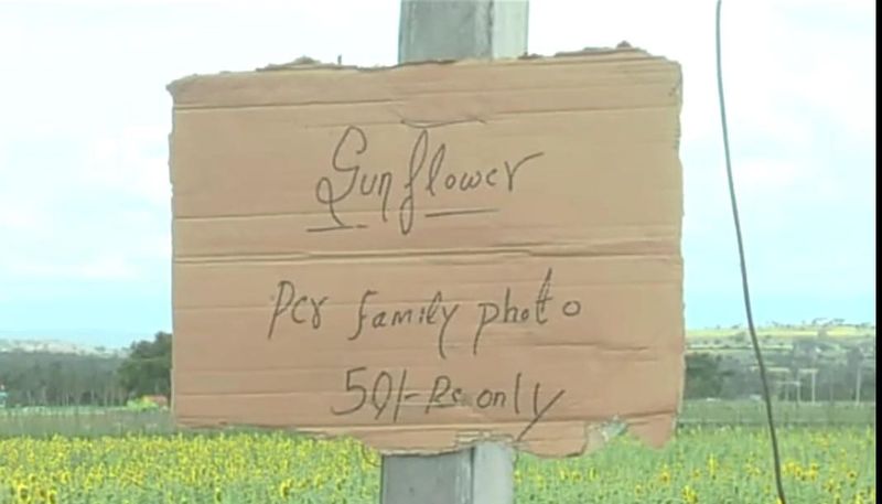 ಇನ್ನೂ ಪ್ರವಾಸಿಗರು ಸೆಲ್ಪಿ ಹೊಡೆದುಕೊಳ್ಳುವ ವೇಳೆ ಗಿಡಗಳು ಹಾನಿಗೀಡಾಗುವ ಸಂಭವವಿದೆ. ಫೋಟೋ ಹಾಗೂ ಸೆಲ್ಪಿ ತೆಗೆದುಕೊಳ್ಳುಲು ಬರುವವರಿಂದ ಸೂರ್ಯಕಾಂತಿ ಗಿಡಗಳು ಮುರಿದು ಹಾಳಾಗಿ ರೈತರಿಗೆ ನಷ್ಟವಾಗುವ ಸಂಭವ ಇದೆ. ಹಾಗಾಗಿ ಈ ನಷ್ಟ ತಪ್ಪಿಸಿಕೊಳ್ಳಲು ರೈತರು ಉಪಾಯವೊಂದನ್ನು ಕಂಡುಕೊಂಡಿದ್ದಾರೆ. ಸೆಲ್ಪಿ ತೆಗೆದುಕೊಳ್ಳಲು ಬರುವ ಪ್ರವಾಸಿಗರಿಗೆ ಇಬ್ಬರಿಗೆ 50 ರೂ ನಿಗದಿಪಡಿಸಿದ್ದಾರೆ. ಇಡೀ ಫ್ಯಾಮಿಲಿ ಫೋಟೋ ತೆಗೆದುಕೊಳ್ಳಲು 100 ರೂಪಾಯಿ ದರ ನಿಗದಿ ಮಾಡಿದೆ. ಯಾರೇ ಆಗಲಿ ಸೂರ್ಯಕಾಂತಿ ಹೊಲದಲ್ಲಿ ಫೋಟೋ ಅಥವಾ ಸೆಲ್ಪಿ ತೆಗೆದುಕೊಳ್ಳಲು ಜಮೀನಿನ ರೈತನಿಗೆ ತಲಾ ಹತ್ತು ರೂಪಾಯಿ ನೀಡಬೇಕು.