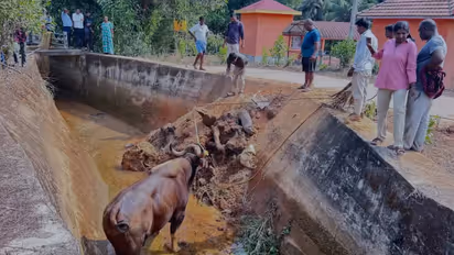 ಉಡುಪಿ (ಏ.26): ಉಡುಪಿ ಜಿಲ್ಲೆಯ ಕುಂದಾಪುರ ತಾಲೂಕಿನ ಕಾಳಾವರ ಗ್ರಾಮ ಪಂಚಾಯತ್ ವ್ಯಾಪ್ತಿಯ ಅಸೋಡು ಗ್ರಾಮದಲ್ಲಿ ಹದಿನೈದು ಅಡಿ ಆಳದ ವಾರಾಹಿ ಕಾಲುವೆಗೆ ಬಿದ್ದಿದ್ದ ಬೃಹತ್ ಗಾತ್ರದ ಕಾಡುಕೋಣವೊಂದನ್ನು ಸತತ 20 ಗಂಟೆಗಳ ಸುದೀರ್ಘ ಕಾರ್ಯಾಚರಣೆಯ ನಂತರ ಯಶಸ್ವಿಯಾಗಿ ರಕ್ಷಿಸಲಾಗಿದೆ. ಅರಣ್ಯ ಇಲಾಖೆ ಅಧಿಕಾರಿಗಳು ಮತ್ತು ಸ್ಥಳೀಯರ ಸಮಯಪ್ರಜ್ಞೆಯಿಂದಾಗಿ ಮೂಕ ಪ್ರಾಣಿಯೊಂದು ಸಾವಿನ ದವಡೆಯಿಂದ ಪಾರಾಗಿದೆ.
