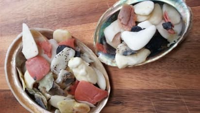 1 ಲೀಟರ್ ಬಿಸಿ ನೀರಿಗೆ ಈ ಎಲ್ಲಾ ತುಂಡುಗಳನ್ನು ಹಾಕಿ, ಕರಗುವ ತನಕ ಬೆರೆಸಿ.
