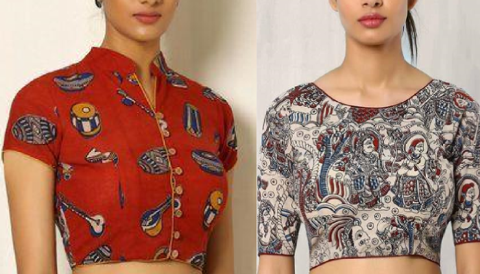 - ಈಗೀಗ ರೇಷ್ಮೆ ಸೀರೆಗೆ ಕಲಂಕಾರಿ ಪ್ರಿಂಟ್ನ ಬ್ಲೌಸ್ ಟ್ರೆಂಡ್ ಆಗ್ತಿದೆ. ಹೈನೆಕ್ ಅಂದರೆ ಕತ್ತಿನವರೆಗೂ ಬರುವ ಕಲಂಕಾರಿ ಬ್ಲೌಸ್ನಲ್ಲಿ ತ್ರೀಫೋತ್ರ್ ಅಳತೆಯ ತೋಳಿನ ಡಿಸೈನ್ ಇರುತ್ತೆ. ತೋಳಿನ ತುಂಬ ಮೇಲಿಂದ ಕೆಳಗಿನವರೆಗೂ ಜರಿ ವರ್ಕ್ ಇರುತ್ತೆ. ಮೈಯ ತುಂಬ ಕಲಂಕಾರಿ ಪ್ರಿಂಟ್. ಇದು ಕಂಟೆಂಪರರಿ ಅನಿಸಿಕೊಂಡಿರುವ ಡಿಸೈನ್. ಅದಿತಿ ರಾವ್ ಹೈದರಿ ಇತ್ತೀಚಿಗೆ ಇಂಥ ಬ್ಲೌಸ್ ತೊಟ್ಟು ಗಮನ ಸೆಳೆದಿದ್ದರು.