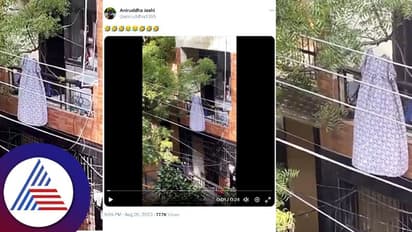ಬೆಳಿಗ್ಗೆ ಆಗಿದ್ದೇನು? : ಭೂತದ ಭಯದಲ್ಲೇ ರಾತ್ರಿ ಕಳೆದ ಮಹಿಳೆ ಬೆಳಿಗ್ಗೆ ಅಲ್ಲೇ ಭೂತವಿದ್ಯಾ ಎಂಬುದನ್ನು ಚೆಕ್ ಮಾಡುವ ಪ್ರಯತ್ನಕ್ಕೆ ಮುಂದಾಗಿದ್ದಾಳೆ. ಧೈರ್ಯ ಮಾಡಿ ಬಾಲ್ಕನಿಗೆ ಹೋಗಿದ್ದಾಳೆ. ಆದ್ರೆ ಅಲ್ಲಿ ಆಗ ಕಂಡ ದೃಶ್ಯ ಆಕೆಗೂ ನಗು ತರಿಸಿದ್ದಲ್ಲದೆ, ಹಿಂದಿನ ರಾತ್ರಿ ನಡೆದ ಘಟನೆಯಿಂದ ಕೋಪವೂ ಬಂದಿದೆ. ಮಹಿಳೆಯೊಬ್ಬರು ತಮ್ಮ ನೈಟಿಯನ್ನು ವಿಚಿತ್ರವಾಗಿ ಒಣ ಹಾಕಿದ್ದಾರೆ. ನೈಟಿಗೆ ಹ್ಯಾಂಗರ್ ಹಾಕಿ ಅದನ್ನು ಮರಕ್ಕೆ ನೇತು ಹಾಕಿದ್ದಾರೆ. ರಾತ್ರಿ ಮಹಿಳೆಗೆ ನೈಟಿ ಮಾತ್ರ ಕಾಣಿಸಿದೆಯೇ ವಿನಃ ಹ್ಯಾಂಗರ್ ಕಾಣಿಸಿಲ್ಲ. ಹಾಗಾಗಿ ಮಹಿಳೆ ಅದನ್ನು ಭೂತ ಎಂದುಕೊಂಡಿದ್ದಾಳೆ. ಯಾರಾದ್ರೂ ನೈಟಿಯನ್ನು ಹೀಗೆ ಒಣ ಹಾಕ್ತಾರಾ ಎಂದು ಮಹಿಳೆ ವಿಡಿಯೋದಲ್ಲಿ ಪ್ರಶ್ನೆ ಮಾಡಿದ್ದಾಳೆ