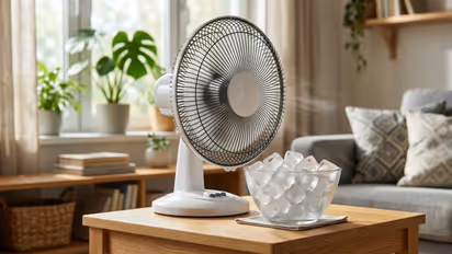 ತೀವ್ರವಾದ ಬೇಸಿಗೆಯಲ್ಲಿ ಸೀಲಿಂಗ್ ಫ್ಯಾನ್ ಆಗಿರಲಿ ಅಥವಾ ಟೇಬಲ್ ಫ್ಯಾನ್ ಆಗಿರಲಿ, ಎಲ್ಲವೂ ಬಿಸಿ ಗಾಳಿಯನ್ನೇ ಹೊರಹಾಕುತ್ತವೆ. ಇದನ್ನು ತಪ್ಪಿಸಲು ನೀವು ಟೇಬಲ್ ಫ್ಯಾನ್ ಮುಂದೆ ಐಸ್ ತುಂಬಿದ ಬೌಲ್ ಇಡಬಹುದು. ಇದರಿಂದ ಕೋಣೆಯಲ್ಲಿ ತಂಪಾದ ಗಾಳಿಯ ಸಂಚಾರ ಉಂಟಾಗುತ್ತದೆ ಮತ್ತು ಉಷ್ಣತೆ ಕಡಿಮೆಯಾಗುತ್ತದೆ. ಇದು ವದಂತಿಯಲ್ಲ ಎಂಬುದು ಸತ್ಯ. 'bestheating' ಮತ್ತು ಫ್ಯಾನ್ ತಯಾರಿಸುವ 'alfafans' ನಂತಹ ಕಂಪನಿಗಳು ಕೂಡ ತಮ್ಮ ಲೇಖನಗಳಲ್ಲಿ ಈ ಉಪಾಯವನ್ನು ಸರಿ ಎಂದು ಹೇಳಿವೆ.