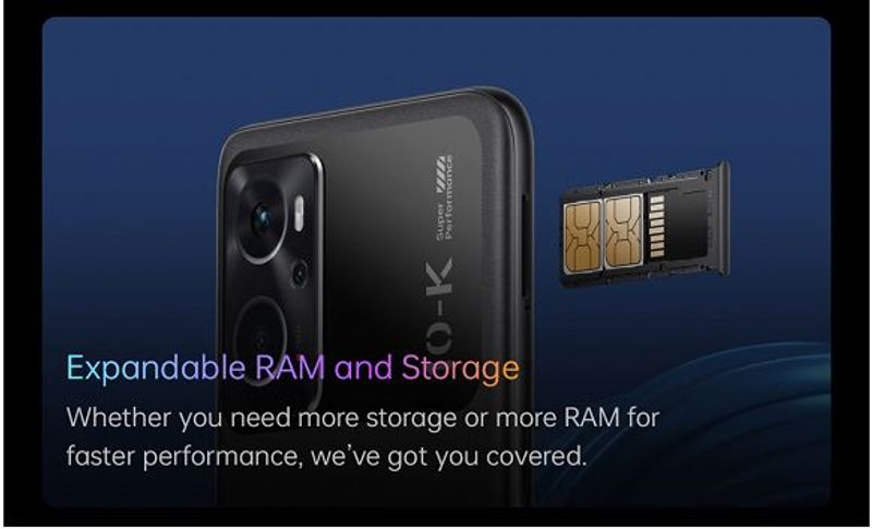 OPPO K10 ROM ವಿಸ್ತರಣೆ ತಂತ್ರಜ್ಞಾನವನ್ನು ಸಹ ನೀಡುತ್ತದೆ ಅದು ಮೈಕ್ರೋ- SD ಕಾರ್ಡ್ಗೆ ಒಂದೇ ಟ್ಯಾಪ್ನಲ್ಲಿ ನಿಮ್ಮ ಡೇಟಾವನ್ನು ಸ್ಥಳಾಂತರಿಸಲು ನಿಮಗೆ ಅನುಮತಿಸುತ್ತದೆ. SD ಕಾರ್ಡ್ ಅನುಭವವನ್ನು ಸುಧಾರಿಸುವುದರಿಂದ ಈ ವೈಶಿಷ್ಟ್ಯವು ತುಂಬಾ ಅನುಕೂಲಕರವಾಗಿದೆ. ಅದರ ಮೇಲೆ, K10 1TB ವರೆಗೆ ಹೆಚ್ಚುವರಿ ಜಾಗವನ್ನು ಸೇರಿಸಬಹುದಾದ ವಿಸ್ತರಿಸಬಹುದಾದ ಸಂಗ್ರಹಣೆಯನ್ನು ಸಹ ನೀಡುತ್ತದೆ.