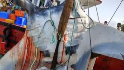 ಮಲ್ಪೆ[ಮೇ.12]: ಇಲ್ಲಿನ ಮೀನುಗಾರಿಕಾ ಬಂದರಿನಲ್ಲಿ ಶನಿವಾರ 1.2 ಟನ್(1200 ಕೆ.ಜಿ) ತೂಕದ ತೊರಕೆ ಮೀನು ದಿವ್ಯಾಂಶಿ ಎಂಬ ಹೆಸರಿನ ಬೋಟ್ ಬಲೆಗೆ ಬಿದ್ದಿತ್ತು. ಈ ಬೃಹತ್ ಗಾತ್ರದ ಮೀನು ಸಿಗುವುದು ಬಹಳ ಅಪರೂಪವಾಗಿದೆ.