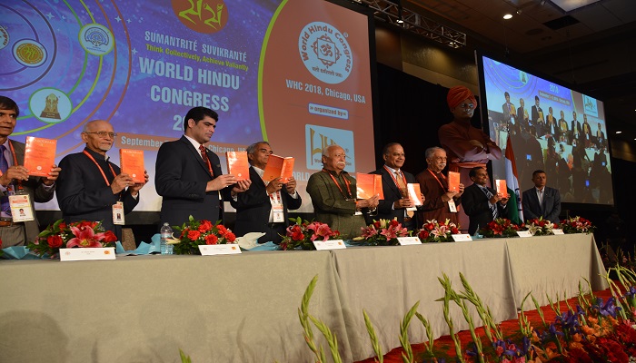 ಶಿಕಾಗೋ: ಸ್ವಾಮಿ ವಿವೇಕಾನಂದರ ಶಿಕಾಗೋ ಭಾಷಣದ 125ನೇ ವರ್ಷಾಚರಣೆ ಹಾಗೂ ಜಾಗತಿಕ ಮಟ್ಟದಲ್ಲಿ ಹಿಂದುಗಳನ್ನು ಒಗ್ಗೂಡಿಸುವ ಸಂಕಲ್ಪದೊಂದಿಗೆ ಶಿಕಾಗೋದಲ್ಲಿ ಆಯೋಜಿಸಲಾಗಿದ್ದ 2ನೇ ವಿಶ್ವ ಹಿಂದೂ ಸಮ್ಮೇಳನಕ್ಕೆ ವಿಧ್ಯುಕ್ತ ಚಾಲನೆ ದೊರೆಯಿತು. ಮೂರು ದಿನಗಳ ಕಾಲ ನಡೆಯಲಿರುವ ಈ ಸಮ್ಮೇಳನಕ್ಕೆ ವಿಶ್ವ ಹಿಂದೂ ಪರಿಷತ್ ನ ಭಾರತದ ಜಂಟಿ ಪ್ರಧಾನ ಕಾರ್ಯದರ್ಶಿ ಸ್ವಾಮಿ ವಿಜ್ಞಾನನಂದ ಗುರೂಜೀ ಶಂಖ ಮೊಳಗಿಸಿ ಚಾಲನೆ ನೀಡಿದರು.