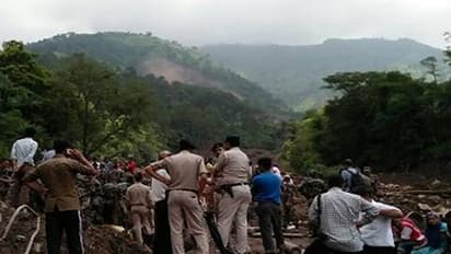 ನವದೆಹಲಿ(ಆ.14): ಹಿಮಾಚಲ ಪ್ರದೇಶದ ಮಂಡಿ-ಪಠಾನಕೋಟ್ ರಾಷ್ಟ್ರೀಯ ಹೆದ್ದಾರಿಯಲ್ಲಿ ಮೇಘ ಸ್ಪೋಟದಿಂದ ಸಂಭವಿಸಿದ ಭಾರೀ ಭೂಕುಸಿತದಿಂದ ಎರಡು ಬಸ್ಸು ಸೇರಿದಂತೆ ಹಲವು ವಾಹನಗಳು ಉರುಳಿ ಬಿದ್ದಿವೆ. ಈ ದುರ್ಘಟನೆಯಲ್ಲಿ ಇದುವರೆಗೆ 46 ಮಂದಿ ಸಾವನ್ನಪ್ಪಿದ್ದಾರೆ.