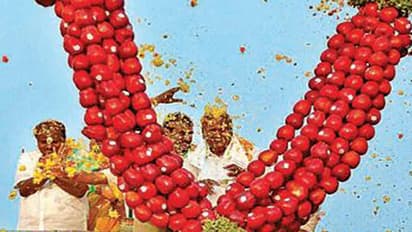 ಮಂಡ್ಯ ಜಿಲ್ಲೆಯ ಮದ್ದೂರಿನಲ್ಲಿ ಗುರುವಾರ ಹಮ್ಮಿಕೊಂಡಿದ್ದ ಜೆಡಿಎಸ್ ರಾಲಿಗೆ ಆಗಮಿಸಿದ ಎಚ್.ಡಿ. ಕುಮಾರಸ್ವಾಮಿ ಅವರಿಗೆ ಸುಮಾರು 500 ಕೆ.ಜಿ. ತೂಕದ, 75 ಸಾವಿರ ರು. ಮೌಲ್ಯದ ಸೇಬು ಹಣ್ಣಿನ ಹಾರ ಹಾಕಿ ಅದ್ಧೂರಿಯಾಗಿ ಸ್ವಾಗತಿಸಲಾಯಿತು. ಸಚಿವ ಡಿ.ಕೆ.ಶಿವಕುಮಾರ್ಗೆ ಮಾ.15 ರಂದು ಶ್ರೀರಂಗಪಟ್ಟಣ ಕ್ಷೇತ್ರದಲ್ಲಿ 300 ಕೆ.ಜಿ. ತೂಕದ ಸೇಬು ಹಾರ ಹಾಕಲಾಗಿತ್ತು.