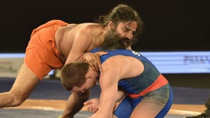 ಬುಧವಾರ ಪ್ರೊ ಕುಸ್ತಿ ಲೀಗ್'ನ 2ನೇ ಸೆಮಿಫೈನಲ್ ಪಂದ್ಯದ ವೇಳೆ ನಡೆದ ಸೌಹಾರ್ದ ಪಂದ್ಯದಲ್ಲಿ ರಾಮ್'ದೇವ್ ತಮ್ಮ ಪವರ್ ತೋರಿಸಿದರು. ಒಲಿಂಪಿಕ್ಸ್ ಪದಕ ವಿಜೇತನನ್ನು 12-0 ಅಂತರದಿಂದ ಆ್ಯಂಡ್ರೆ ಸ್ಟಾಡ್ನಿಕ್ ರನ್ನು ಸೋಲಿಸಿದರು. ಯೋಗದಲ್ಲಿ ಎಷ್ಟು ಶಕ್ತಿ ಇದೆ ಎನ್ನುವುದನ್ನು ತೋರಿಸುವ ಸಲುವಾಗಿ ಒಲಿಂಪಿಕ್ಸ್ ಪದಕ ವಿಜೇತನ ವಿರುದ್ಧ ಹೋರಾಡಿದೆ ಎಂದು ರಾಮ್ದೇವ್ ತಿಳಿಸಿದ್ದಾರೆ.
