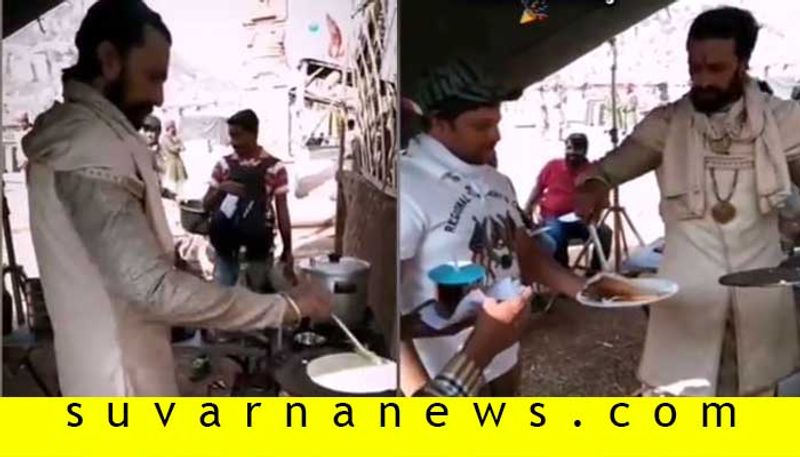 ಮೆಗಾಸ್ಟಾರ್ ಚಿರಂಜೀವಿ ಸೈರಾ ನರಸಿಂಹ ರೆಡ್ಡಿ ಚಿತ್ರದಲ್ಲಿ ಕಿಚ್ಚ ಸುದೀಪ್ ಕಾಣಿಸಿಕೊಳ್ಳುತ್ತಿರುವುದು ಗೊತ್ತೇ ಇದೆ. ಚಿತ್ರದ ಪೋಸ್ಟರ್, ಟ್ರೇಲರ್ ಸಿಕ್ಕಾಪಟ್ಟೆ ಸದ್ದು ಮಾಡುತ್ತಿದೆ. ಅಕ್ಟೋಬರ್ 2 ರಂದು ಸೈರಾ ತೆರೆಗೆ ಬರಲಿದೆ. ಸೈರಾ ಸೆಟ್ ನಲ್ಲಿ ಫನ್ ಟೈಮಲ್ಲಿ ಕಿಚ್ಚ ಸುದೀಪ್ ಆಮ್ಲೆಟ್ ದೋಸೆ ಹೊಯ್ದಿದ್ದಾರೆ.