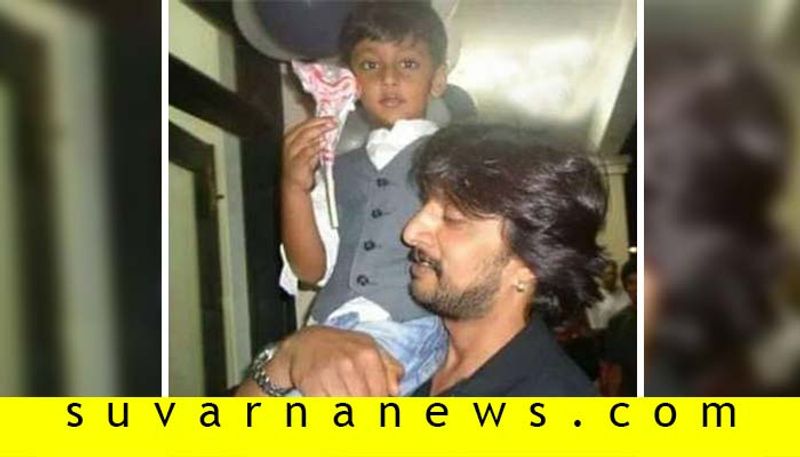 8) ಕಿಚ್ಚನ ಹೆಗಲೇರಿದ ದರ್ಶನ್ ಪುತ್ರ; ಫೋಟೋ ವೈರಲ್!..