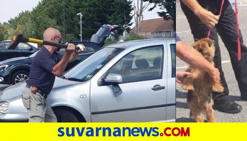 ಕೊಡಲಿಯಿಂದ ಕಾರಿನ ಕನ್ನಡಿ ಒಡೆದು ನಾಯಿ ರಕ್ಷಿಸಿದ..!
