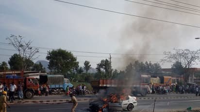 ರಾಮನಗರ(ಡಿ.30): ಮೈಸೂರು ಕಡೆಯಿಂದ ಬೆಂಗಳೂರಿಗೆ ಬರುತ್ತಿದ್ದ ಫೋರ್ಡ್ ಐಕಾನ್ ಕಾರಿಗೆ ಆಕಸ್ಮಿಕ ಅಗ್ನಿ ಸಂಭವಿಸಿದ್ದು, ಕಾರಿನಲ್ಲಿದ್ದ ನಾಲ್ವರು ಪ್ರಾಣಾಪಾಯದಿಂದ ಪಾರಾಗಿದ್ದಾರೆ.