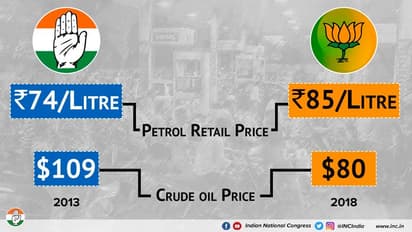ಈ ಕುರಿತು ಫೇಸ್ಬುಕ್ ನಲ್ಲಿ ಫೋಟೋ ಶೇರ್ ಮಾಡಿರುವ ಶಶಿ ತರೂರ್, 2013 ರಲ್ಲಿ ಅಂತರಾಷ್ಟ್ರೀಯ ಮಾರುಕಟ್ಟೆಯಲ್ಲಿ ಕಚ್ಚಾ ತೈಲದ ಬೆಲೆ ಒಂದು ಬ್ಯಾರೆಲ್ಗೆ 109 ಯುಎಸ್ ಡಾಲರ್ ಇತ್ತು, ಆದರೂ ಯುಪಿಎ ಸರ್ಕಾರದ ಅವಧಿಯಲ್ಲಿ ಪೆಟ್ರೋಲ್ ಬೆಲೆ ಕೇವಲ 74 ರೂ ಇತ್ತು. ಆದರೆ 2018 ರಲ್ಲಿ ಕಚ್ಚಾ ತೈಲದ ಬೆಲೆ ಒಂದು ಬ್ಯಾರೆಲ್ಗೆ 80 ಯುಎಸ್ ಡಾಲರ್ ಆಗಿದ್ದರೂ, ಮೋದಿ ಸರ್ಕಾರದ ಅವಧಿಯಲ್ಲಿ ಪೆಟ್ರೋಲ್ ಬೆಲೆ 85 ರೂ. ಇದೆ ಎಂದು ತುಲನೆ ಮಾಡಿದ್ದರು.