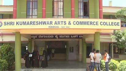 ಹಾವೇರಿ(ಅ.06): ವಿದ್ಯಾದೇಗುಲದಲ್ಲಿ ಧರ್ಮಯುದ್ದ ನಡೆಯುತ್ತಿದೆ. ಹಾವೇರಿ ಜಿಲ್ಲೆಯ ಹಾನಗಲ್ ತಾಲೂಕಿನ ವಿವಿಧ ಕಾಲೇಜುಗಳಲ್ಲಿ, ಈಗ ಬುರ್ಖಾ ವರ್ಸಸ್ ಕೇಸರಿ ಶಾಲು ಎನ್ನುವ ಸ್ಥಿತಿ ನಿರ್ಮಾಣವಾಗಿದೆ. ಹಾನಗಲ್ ಪಟ್ಟಣದ ಕುಮಾರೇಶ್ವರ ಪದವಿ ಕಾಲೇಜಿನಲ್ಲಿ ಸಮವಸ್ತ್ರ ಧರಿಸಿಕೊಂಡು ಕಾಲೇಜಿಗೆ ವಿಧ್ಯಾರ್ಥಿಗಳು ಬರಬೇಕು. ಆದ್ರೆ ಒಂದು ಕೋಮಿಗೆ ಸೇರಿದ ವಿಧ್ಯಾರ್ಥಿನೀಯರು ಬುರ್ಖಾ ಧರಿಸಿ ಬರುತ್ತಿದ್ದಾರೆ.