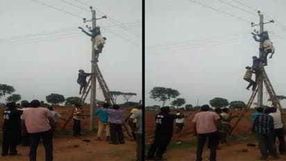 ಶಿವಕುಮಾರ್ ವಿದ್ಯುತ್ ಕಂಬ ಏರಿದ ಮಾಜಿ ಗುತ್ತಿಗೆ ನೌಕರ. ಗ್ರಾಮದಲ್ಲಿ ವಿದ್ಯುತ್ ಇಲ್ಲದ ಕಾರಣ, ಪರಿಶೀಲನೆಗೆ ಆಗಮಿಸಿದ್ದ ಚೆಸ್ಕಾಂ ಸಿಬ್ಬಂದಿ ಪುಟ್ಟರಾಜು ತಾನು ಕಂಬ ಹತ್ತುವ ಬದಲು ಶಿವಕುಮಾರ್ನನ್ನು ಹತ್ತಿಸಿದ ಆರೋಪ ಕೇಳಿ ಬಂದಿದೆ.