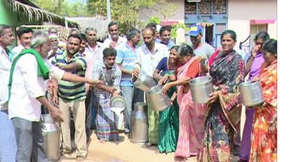 ತುಮಕೂರು(ನ.30): ಹಾಲಿಗೆ ನೀಡುತ್ತಿರುವ ದರ ಹೆಚ್ಚಿಸಬೇಕೆಂದು ಆಗ್ರಹಿಸಿ ಹಾಲನ್ನು ಚೆಲ್ಲುವ ಮೂಲಕ ತಿಪಟೂರು ತಾಲೂಕಿನ ರೈತರು ವಿಭಿನ್ನ ಪ್ರತಿಭಟನೆ ನಡೆಸಿದರು.