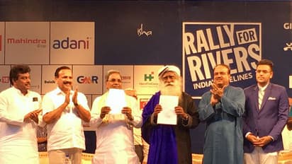 ಈಶಾ ಫೌಂಡೇಶನ್ ರಾಜಧಾನಿಯಲ್ಲಿ ಶನಿವಾರ ಹಮ್ಮಿಕೊಂಡಿದ್ದ ನದಿಗಳನ್ನು ರಕ್ಷಿಸಿ ಅಭಿಯಾನದ ಬೃಹತ್ ಸಾರ್ವಜನಿಕ ಸಮಾರಂಭದಲ್ಲಿ ಪಾಲ್ಗೊಂಡಿದ್ದ ಮುಖ್ಯಮಂತ್ರಿ ಸಿದ್ದರಾಮಯ್ಯ ಹಾಗೂ ಈಶಾ ಫೌಂಡೇಶನ್ ಸದ್ಗುರು ಜಗ್ಗಿ ಅವರು ಗಿಡ ನೆಡುವ ಒಪ್ಪಂದಕ್ಕೆ ಸಹಿ ಹಾಕಿದರು.