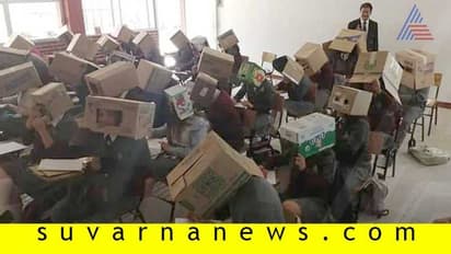 ಇಲ್ಲಿ ವಿದ್ಯಾರ್ಥಿಗಳು ರಟ್ಟಿನ ಬಾಕ್ಸ್ ಅನ್ನು ತಲೆಗೆ ಹಾಕಿಕೊಂಡು ಪರೀಕ್ಷೆ ಬರೆಯಬೇಕು. ವಿದ್ಯಾರ್ಥಿಗಳಿಗೆ ಪ್ರಶ್ನೆಪತ್ರಿಕೆ ನೋಡಲು ರಟ್ಟಿನ ಬಾಕ್ಸ್ನಲ್ಲಿ ಸಣ್ಣದೊಂದು ಕಿಂಡಿ ಕೊರೆಯಲಾಗಿದೆ.