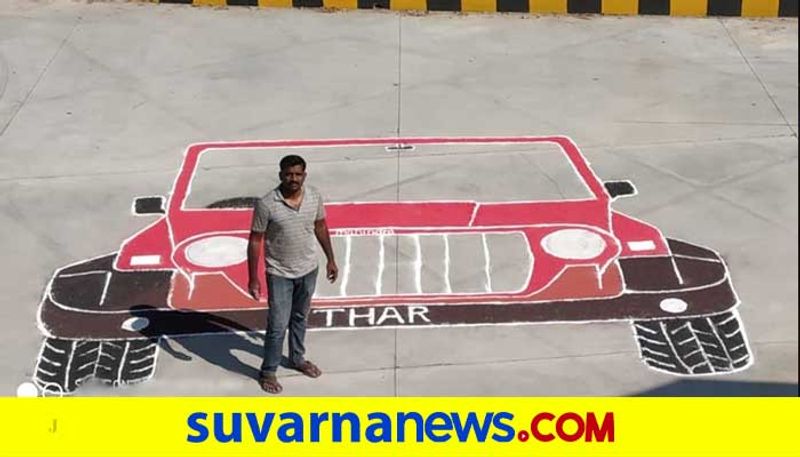 ಕಳೆದ ವರ್ಷವಷ್ಟೇ ಮಹೀಂದ್ರಾ ಕಂಪನಿ ತನ್ನ ಎರಡನೇ ತಲೆಮಾರಿನ ಥಾರ್ ಎಸ್ಯುವಿ ಬಿಡುಗಡೆ ಮಾಡಿತ್ತು. ತನ್ನ ಅದ್ಭುತ ಚಾಲನಾ ಶಕ್ತಿಯಿಂದ ಚಾಲಕರಿಗೆ ಪ್ರೇರಣೆ ನೀಡುವ ಥಾರ್, ಕಲಾವಿದರಿಗೂ ಮೋಡಿ ಮಾಡಿದೆ. ಮಂಡ್ಯದ ಕಲಾವಿದರೊಬ್ಬರು 20 ಅಡಿ ಥಾರ್ ರಂಗೋಲಿ ಬಿಡಿಸಿ ಇಂಡಿಯಾ ಬುಕ್ ರೆಕಾರ್ಡ್ ಸೇರಿದ್ದಾರೆ.