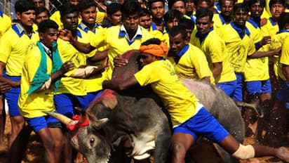 ಚೆನ್ನೈ(ಜ.22): ತಮಿಳುನಾಡಿನ ಸಾಂಪ್ರದಾಯಿಕ ಉತ್ಸವ ಜಲ್ಲಿಕಟ್ಟುವಿಗೆ ತಿರುಚನಾಪಳ್ಳಿ ಒಳಗೊಂಡು ಹಲವು ಜಿಲ್ಲೆಗಳಲ್ಲಿ ಅದ್ದೂರಿ ಚಾಲನೆ ದೊರೆತಿದೆ. ಜಿಲ್ಲೆಯ ಮನಪ್ಪರೈನಲ್ಲಿ ಗೂಳಿಯಾಟಕ್ಕೆ ಸಾವಿರಾರು ಜನರು ಸಾಕ್ಷಿಯಾದರು. ಕ್ರೀಡೆಯಲ್ಲಿ 100 ಕ್ಕೂ ಹೆಚ್ಚು ಗೂಳಿಗಳೊಂದಿಗೆ 500ಕ್ಕೂ ಹೆಚ್ಚು ರೈತರು ಪಾಲ್ಗೊಂಡಿದ್ದಾ.
