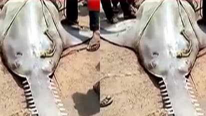 ಮಹಾರಾಷ್ಟ್ರ(ಮಾ.29): 20 ಅಡಿ ಉದ್ದ ಮತ್ತು 700 ಕೆಜಿ ತೂಕದ ಅಪರೂಪದದ ಗರಗಸ ಮೀನೊಂದು ಮಹಾರಾಷ್ಟ್ರದಲ್ಲಿ ಬೆಸ್ತರ ಬಲೆಗೆ ಬಿದ್ದಿದೆ. ಇದನ್ನ ಸಾ ಫಿಶ್ ಅಂತಲೂ ಕರೆಯುತ್ತಾರೆ.