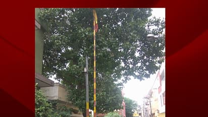 ಬೆಂಗಳೂರು(ಜುಲೈ 23): ಕನ್ನಡ ವಿರೋಧಿ ದುಷ್ಕರ್ಮಿಗಳು ನಗರದಲ್ಲಿ ಮತ್ತೊಮ್ಮೆ ಆಟಾಟೋಪ ಮೆರೆದಿದ್ದಾರೆ. ಜೆಸಿ ನಗರದ ಟಿವಿ ಟವರ್ ಬಳಿ ಕನ್ನಡ ಧ್ವಜದ ಕಂಬವನ್ನು ಕೆಡವುವ ಪ್ರಯತ್ನ ನಡೆದಿರುವುದು ಬೆಳಕಿಗೆ ಬಂದಿದೆ. ಧ್ವಜಸ್ತಂಭ ಆ್ಯಸಿಡ್ ಹಾಕಿ ನಾಶ ಮಾಡಲು ಯತ್ನಿಸಲಾಗಿದೆ. ಸಮೀಪದ ಅಪಾರ್ಟ್'ಮೆಂಟ್'ನ ನಿವಾಸಿಗಳು ಈ ಕೃತ್ಯ ಎಸಗಿರಬಹುದೆಂಬ ಶಂಕೆ ವ್ಯಕ್ತವಾಗಿದೆ. ಕನ್ನಡಪರ ಸಂಘಟನೆಗಳು ಘಟನಾ ಸ್ಥಳಕ್ಕೆ ಆಗಮಿಸಿ ಪರಿಶೀಲನೆ ನಡೆಸುತ್ತಿದ್ದಾಋಎ.