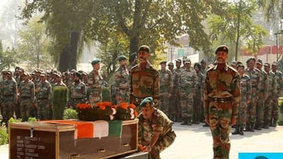 ಕುರುಕ್ಷೇತ್ರ, ಹರ್ಯಾಣ (ಅ.30): ಪಾಕಿಸ್ತಾನ ಸೈನಿಕರು ಹಾಗೂ ಉಗ್ರಗಾಮಿಗಳು ಜಂಟಿಯಾಗಿ ನಡೆಸಿದ ದಾಳಿಗೆ ಶುಕ್ರವಾರ ಹುತಾತ್ಮರಾದ ಮನ್ ದೀಪ್ ಸಿಂಗ್’ಗೆ ಇಂದು ಅಂತಿಮ ನಮನ ಸಲ್ಲಿಸಲಾಯಿತು.