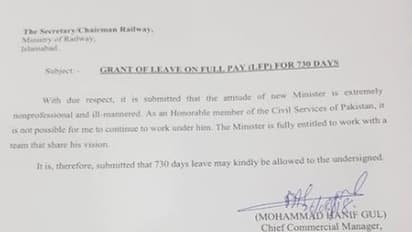 ಇಸ್ಲಮಾಬಾದ್ : ಪಾಕಿಸ್ತಾನದ ರೈಲ್ವೆ ಇಲಾಖೆ ಅಧಿಕಾರಿಯೋರ್ವ 730 ದಿನಗಳ ಕಾಲ ರಜೆ ನೀಡಬೇಕು ಎಂದು ಅರ್ಜಿ ಸಲ್ಲಿಸಿದ್ದಾನೆ.