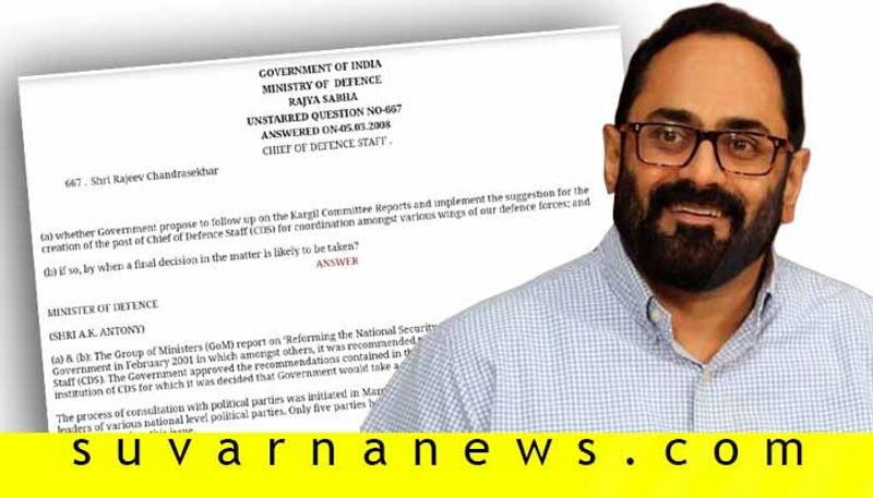 ಇಂತದ್ದೇ ಪ್ರಸ್ತಾವನೆಯನ್ನಯ ರಾಜ್ಯಸಭಾ ಸಂಸದ ರಾಜೀವ್ ಚಂಧ್ರಶೇಖರ್ ಈ ಹಿಂದೆಯೇ ಮಂಡಿಸಿದ್ದು ವಿಶೇಷವಾಗಿದೆ. 2008ರಲ್ಲೇ ಕಾರ್ಗಿಲ್ ಸಮಿತಿಯ ಶಿಫಾರಸ್ಸಿನ ಅನ್ವಯ ಮೂರೂ ರಕ್ಷಣಾಪಡೆಗಳಿಗೆ ಓರ್ವ ಮುಖ್ಯಸ್ಥನನ್ನು ನೇಮಿಸುವ ಇರಾದೆ ಸರ್ಕಾರಕ್ಕಿದೆಯೇ ಎಂದು ರಾಜೀವ್ ಚಂದ್ರಶೇಖರ್ ರಾಜ್ಯಸಭೆಯಲ್ಲಿ ಪ್ರಶ್ನಿಸಿದ್ದರು.