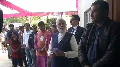 ಅಹಮದಾಬಾದ್(ಡಿ.14): ಗುಜರಾತಿನ ಎರಡನೇ ಹಂತದ ಚುನಾವಣೆಯಲ್ಲಿ ಪ್ರಧಾನಿ ನರೇಂದ್ರ ಮೋದಿ ಅವರು ಅಹಮದಾಬಾದ್ ಜಿಲ್ಲೆಯ ಸಾಬರಮತಿ ವಿಧಾನಸಭಾ ಕ್ಷೇತ್ರದ ಶಾಲೆಯೊಂದರಲ್ಲಿ ಸಾಲಿನಲ್ಲಿ ನಿಂತು ತಮ್ಮ ಮತದಾನದ ಮಾಡಿದ್ದಾರೆ.