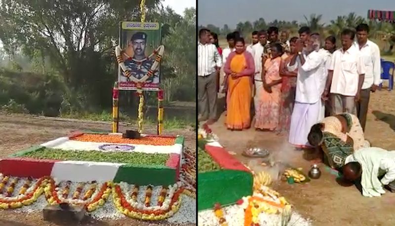 ಕಣ್ಣೀರಿಡುತ್ತಲೇ ಹುತಾತ್ಮಯೋಧ ಗುರುವಿನ ಸಮಾಧಿಗೆ ಪೂಜೆ ಮಾಡಿದ ಪತ್ನಿ