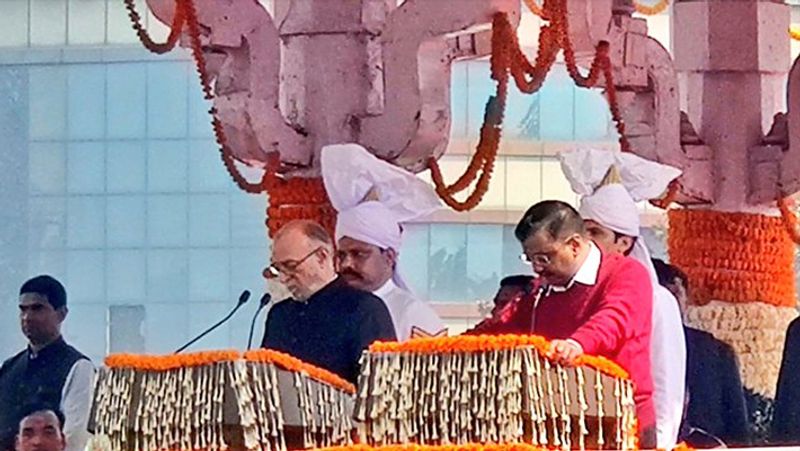 ಈಶ್ವರ್ ಕಾ ಶಪಥ್: ದೆಹಲಿ ಸಿಎಂ ಆಗಿ ಕೇಜ್ರಿ ಪ್ರಮಾಣವಚನ!