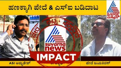 ಬೆಂಗಳೂರು(ನ.05): ಹಣಕ್ಕಾಗಿ ಪೊಲೀಸ್ ಠಾಣೆಯಲ್ಲೇ ಕಿತ್ತಾಡಿದ ಎಸ್'ಐ ಹಾಗೂ ಪೇದೆ ಸಸ್ಪೆಂಡ್ ಆಗಿದ್ದಾರೆ. ಬೆಂಗಳೂರಿನ ಮಹದೇವಪುರ ಠಾಣೆಯಲ್ಲಿ ಪೇದೆ ಹಾಗೂ ಎಎಸ್ಐ ಕಿತ್ತಾಡಿಕೊಂಡಿದ್ರು. ಇವರಿಬ್ಬರ ರಂಪಾಟದ ಬಗ್ಗೆ ಸುವರ್ಣ ನ್ಯೂಸ್ ವರದಿ ಮಾಡಿತ್ತು. ವರದಿಯಿಂದ ಎಚ್ಚೆತ್ತ ಡಿಸಿಪಿ ಅಬ್ದುಲ್ ಅಹದ್, ಎಎಸ್ಐ ಅಮೃತೇಶ್ ಮತ್ತು ಪೇದೆ ಜಯಕಿರಣ್ರನ್ನು ಅಮಾನತುಗೊಳಿಸಿದ್ದಾರೆ.