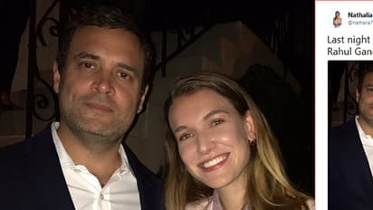 ವಾಷಿಂಗ್ಟನ್(ಸೆ.21): ಅಮೆರಿಕದಲ್ಲಿ ಚಿತ್ರನಟಿಯ ಜೊತೆ ರಾಹುಲ್ ಗಾಂಧಿಯಿರುವ ಫೋಟೋ ವೈರಲ್ ಆಗಿದೆ. Last night with the eloquent and insightful Rahul Gandhi..... ಎಂಬ ಸಂದೇಶದೊಂದಿಗೆ ನಟಿ ನಥಾಲಿಯಾ ರೋಮ್ಸ್ ಟ್ವಿಟರ್'ನಲ್ಲಿ ಫೋಟೋ ಹಂಚಿಕೊಂಡಿದ್ದಾರೆ.