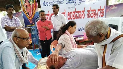 ಬೆಂಗಳೂರು (ಏ. 08): ಗೋ ಕಳ್ಳರ ಬಂಧನ ಆಗ್ರಹಿಸಿ ಅಮರಣಾಂತ ಉಪವಾಸ ಕೈಗೊಂಡ ರಾಜಾರಾಂ ಭಟ್ ಅಸ್ವಸ್ಥರಾಗಿದ್ದಾರೆ.