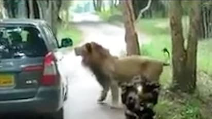 ಬೆಂಗಳೂರು(ಸೆ.07): ಬನ್ನೇರುಘಟ್ಟ ರಾಷ್ಟ್ರೀಯ ಉದ್ಯಾನವನದ ಸಫಾರಿಯಲ್ಲಿ ಕಾರಿನ ಮೇಲೆ ಸಿಂಹಗಳು ದಾಳಿ ನಡೆಸಿರುವ ಘಟನೆ ವರದಿಯಾಗಿದೆ.