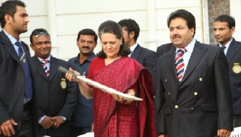 2007ರಲ್ಲಿ ದಕ್ಷಿಣ ಆಪ್ರಿಕಾದಲ್ಲಿ ನಡೆದ ಟಿ20 ಪಂದ್ಯದಲ್ಲಿ ಭಾರತ ತಂಡ ಪಾಕಿಸ್ತಾನವನ್ನು ಮಣಿಸಿ ವಿಶ್ವ ಚಾಂಪಿಯನ್ ಶಿಪ್ ಪಟ್ಟಗಳಿಸಿತ್ತು. ಆ ಪ್ರಯುಕ್ತ ಅಕ್ಟೋಬರ್ 30, 2007ರಂದು ಧೋನಿ ನೇತೃತ್ವ ದ ಟೀಮ್ ಇಂಡಿಯಾ ಆಗಿನ ಪ್ರಧಾನಿ ಮನಮೋಹನ್ ಸಿಂಗ್ ಮತ್ತು ಕಾಂಗ್ರೆಸ್ ಅಧ್ಯಕ್ಷೆ ಸೋನಿಯಾ ಗಾಂಧಿಯನ್ನು ನವದೆಹಲಿಯಲ್ಲಿ ಭೇಟಿ ಮಾಡಿತ್ತು. ಆಗ ಧೋನಿ ತಮ್ಮ ಆಟೋಗ್ರಾಫ್ ಪಡೆದ ಬ್ಯಾಟ್ ಅನ್ನು ಸೋನಿಯಾ ಗಾಂಧಿಗೆ ಉಡುಗೊರೆಯಾಗಿ ನೀಡಿದ್ದರು.