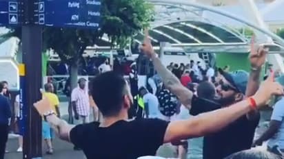 ಭಾನುವಾರ ಅಭ್ಯಾಸದ ಬಳಿಕ ಕೊಹ್ಲಿ, ಅನುಷ್ಕಾ ಜತೆ ಇಲ್ಲಿನ ಮಾಲ್'ವೊಂದಕ್ಕೆ ಶಾಪಿಂಗ್ಗೆ ತೆರಳಿದ್ದರು. ಕೊಹ್ಲಿಯನ್ನು ಪತ್ತೆ ಹಿಡಿದ ಕೆಲ ಅಭಿಮಾನಿಗಳು, ಫೋಟೋ ಕ್ಲಿಕ್ಕಿಸಿ ಸಾಮಾಜಿಕ ತಾಣಗಳಲ್ಲಿ ಹಾಕಿದ್ದು, ಫೋಟೋ ವೈರಲ್ ಆಗಿದೆ.