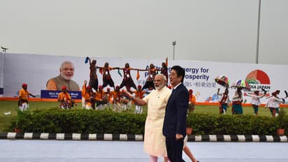 ನವದೆಹಲಿ (ಸೆ.13): ಭಾರತ-ಜಪಾನ್ ವಾರ್ಷಿಕ ಶೃಂಗಸಭೆಯಲ್ಲಿ ಭಾಗವಹಿಸಲು ಜಪಾನ್ ಪ್ರಧಾನ ಮಂತ್ರಿ ಶಿಂಜೋ ಅಬೆ ಎರಡು ದಿನಗಳ ಭಾರತ ಪ್ರವಾಸ ಕೈಗೊಂಡಿದ್ದು, ಇಂದು ಮಧ್ಯಾಹ್ಯ ಅಹ್ಮದಾಬಾದ್’ಗೆ ಆಗಮಿಸಿದ್ದಾರೆ.