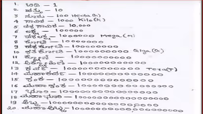 ಇದನ್ನು ಪಚಿಂ ನಲ್ಲಿ ಹಾಕಬಹುದೇ ಬೇಡವೇ ಗೊಂದಲ. ಇದರಲ್ಲಿರುವ ಶಬ್ದಗಳಲ್ಲಿ ಕನ್ನಡ ಪದಗಳೆಷ್ಟು ? ಅಂತ ಗೊತ್ತಾಗುವುದಾದರೆ , ನಮ್ಮಲ್ಲಿಯೂ ಈ ದೊಡ್ಡ ಮೊತ್ತಗಳನ್ನು ಒಂದಿಲ್ಲೊಂದು ರೀತಿ ಬಳಸುತ್ತಿದ್ದರು ಅಂತ ತಿಳಿಯಲು ಸಹಾಯಕ.