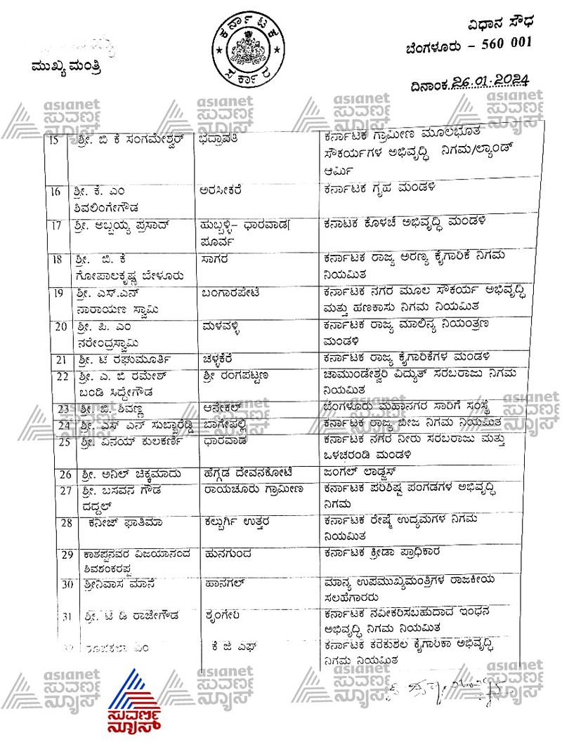ಬೆಂಗಳೂರು (ಜ.26): 32 ಶಾಸಕರನ್ನು ನಿಗಮ ಮಂಡಳಿಗೆ ನೇಮಕ ಮಾಡಿ ಆದೇಶ ಹೊರಡಿಸಿದೆ. ಗಣರಾಜ್ಯೋತ್ಸವದ ದಿನದವೇ ಬಹುನಿರೀಕ್ಷಿತ ಆದೇಶ ರಾಜ್ಯ ಸರ್ಕಾರದಿಂದ ಪ್ರಕಟವಾಗಿದೆ. 32 ಶಾಸಕರ ನಿಗಮ ಮಂಡಳಿ ನೇಮಕ ಆದೇಶದಲ್ಲಿ ಸಿಎಂ ಸಿದ್ದರಾಮಯ್ಯ ಬಣದ ಶಾಸಕರ ಮೇಲುಗೈ ಎದ್ದು ಕಾಣಿಸಿದೆ. ಇಂದು ರಾಜ್ಯಕ್ಕೆ ಬರಬೇಕಿದ್ದ ಎಐಸಿಸಿ ಪ್ರಧಾನ ಕಾರ್ಯದರ್ಶಿ ಹಾಗೂ ರಾಜ್ಯ ಕಾಂಗ್ರೆಸ್ ಉಸ್ತುವಾರಿ ರಣದೀಪ್ಸಿಂಗ್ ಸುರ್ಜೇವಾಲಾ ಭೇಟಿ ಮುಂದಕ್ಕೆ ಹೋಗಿದ್ದರಿಂದ ನಿಗಮ ಮಂಡಳಿ ಪಟ್ಟಿ ಬಿಡುಗಡೆ ಇನ್ನಷ್ಟು ತಡವಾಗಬಹುದು ಎನ್ನುವ ಸೂಚನೆಗಳಿದ್ದವು. ಆದರೆ, ಸಂಜೆಯ ವೇಳೆಗೆ 36 ಶಾಸಕರ ಪಟ್ಟಿಯನ್ನು ಇದಕ್ಕೆ ಅಂತಿಮ ಮಾಡಲಾಗಿದೆ. ಎಲ್ಲಾ ಶಾಸಕರುಗಳನ್ನು ಇಲ್ಲಿನ ನಿಗಮ ಮಂಡಳಿಯ ಅಧ್ಯಕ್ಷರನ್ನಾಗಿ ಸಂಪುಟ ದರ್ಜೆಯ ಸ್ಥಾನ ಮಾನದೊಂದಿಗೆ ಅಂದರೆ, ಸಚಿವರಿಗೆ ನೀಡಲಾಗುವ ಎಲ್ಲಾ ಸೌಲಭ್ಯದೊಂದಿಗೆ ಎರಡು ವರ್ಷಗಳ ಅವಧಿಗೆ ನೇಮಕ ಮಾಡಲಾಗಿದೆ ಎಂದು ಸಿಎಂ ಸಿದ್ಧರಾಮಯ್ಯ ತಮ್ಮ ಆದೇಶದಲ್ಲಿ ತಿಳಿಸಿದ್ದಾರೆ.