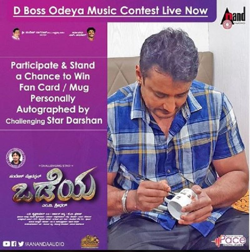 'ಒಡೆಯ' ಚಿತ್ರದ ಆಡಿಯೋ ಹಕ್ಕನ್ನು ಆನಂದ್ ಆಡಿಯೋ ಖರೀದಿಸಿದೆ. ದರ್ಶನ್ ಅಭಿಮಾನಿಗಳಿಗಾಗಿ ಒಂದು ಸ್ಪರ್ಧೆಯನ್ನು ಏರ್ಪಡಿಸಿದೆ. ಈ ಕಾಂಪಿಟೇಶನ್ನಲ್ಲಿ ಗೆದ್ದವರಿಗೆ ದರ್ಶನ್ ಸಹಿಯಿರುವ ಕಾಫಿ ಮಗ್ ಬಹುಮಾನವಾಗಿ ಸಿಗಲಿದೆ.