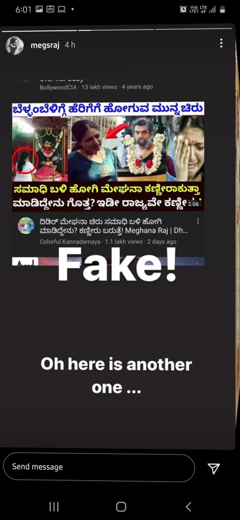 ನಟಿ ಮೇಘನಾ ಟ್ವಿಟ್ಟರ್, ಇನ್ಸ್ಟಾಗ್ರಾಂನಲ್ಲಿ ಪೋಸ್ಟ್ ಮಾಡುವ ಮೂಲಕ ಫೇಕ್ ಸುದ್ದಿಗಳ ಬಗ್ಗೆ ಸ್ಪಷ್ಟಪಡಿಸಿದ್ದಾರೆ. ಅಲ್ಲದೇ ಸೋಶಿಯಲ್ ಮೀಡಿಯಾದಲ್ಲಿ ಹರಿದಾಡುತ್ತಿದ್ದ ವಿಡಿಯೋದ ಸ್ಕ್ರೀನ್ಶಾಟ್ ತೆಗೆದುಕೊಂಡು ಆ ಫೋಟೋವನ್ನು ಪೋಸ್ಟ್ ಮಾಡಿ ಅಭಿಮಾನಿಗಳಲ್ಲಿ ಮನವಿ ಮಾಡಿಕೊಂಡಿದ್ದಾರೆ.