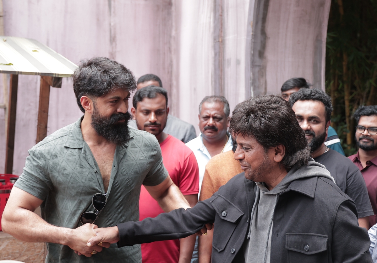 ಅಂದಹಾಗೆ, ರಾಕಿಂಗ್ ಸ್ಟಾರ್ ಯಶ್ ಅವರು ನಟ ಶಿವಣ್ಣ ಅವರ ಶೂಟಿಂಗ್ ಸೆಟ್ಗೆ ಸರ್ಪ್ರೈಸ್ ವಿಸಿಟ್ ಕೊಟ್ಟಿದ್ದಾರೆ. ಯಶ್ ಅವರನ್ನು ಕಂಡೊಡನೇ ಶಿವಣ್ಣ ಹತ್ತಿರ ಬಂದು ಹಗ್ ಮಾಡಿ, ಯಶ್ ಅವರನ್ನು ಬಿಗಿದಪ್ಪಿ ಆಲಂಗನ ಮಾಡಿದ್ದಾರೆ. ಕನ್ನಡದ ಈ ಎರಡು ಮಹಾನ್ ಕಲಾವಿದರ ಸಂಗಮಕ್ಕೆ ಅಲ್ಲಿದ್ದ ಎರಡೂ ಚಿತ್ರಗಳ ತಂಡದವರು ಸಾಕ್ಷಿಯಾಗಿ ಪುಳಕ ಅನುಭವಿಸಿದ್ದಾರೆ. ನಟರಾದ ಯಶ್ ಹಾಗೂ ಶಿವಣ್ಣ ಅಲ್ಲೇ ಸ್ವಲ್ಪ ಹೊತ್ತು ಕುಳಿತು ಪರಸ್ಪರ ಮಾತುಕತೆ ನಡೆಸಿದ್ದಾರೆ.