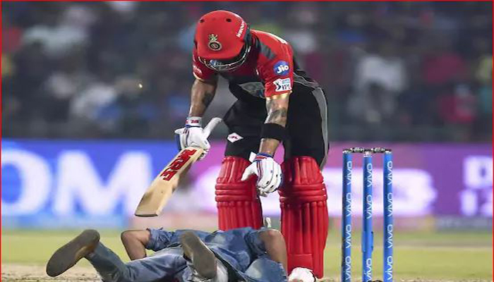 ಈ ಸಂದರ್ಭದಲ್ಲಿ ವಿರಾಟ್ ಕೊಹ್ಲಿ ಆಟವಾಡುತ್ತಿದ್ದಾಗ ಏಕಾಏಕಿ ಮೈದಾನಕ್ಕೆ ನುಗ್ಗಿದ ಅಭಿಮಾನಿಯೊಬ್ಬ ಭದ್ರತಾಪಡೆಯಿಂದ ನುಸುಳಿ ವಿರಾಟ್ ಕಾಲಿಗೆ ದಡಕ್ಕನೆ ಬಿದ್ದಿದ್ದಾನೆ. ಯುವಕನ ಅವಾಂತರ ಕಂಡ ಬೆಂಗಳೂರು ತಂಡದ ನಾಯಕ ಒಂದು ಕ್ಷಣ ಗಾಬರಿಯದರು. ನಂತರ ಎದ್ದ ಆ ಯುವಕ ಸೆಲ್ಫಿ ತೆಗೆದುಕೊಂಡ. ಕೆಲವು ಸೆಂಕೆಡುಗಳಲ್ಲಿ ಆಗಮಿಸಿದ ಭದ್ರತಾ ಸಿಬ್ಬಂದಿ ಯುವಕನನ್ನು ತಮ್ಮ ವಶಕ್ಕೆ ಪಡೆದುಕೊಂಡರು.