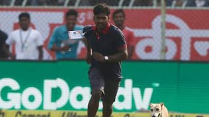 ವಿಶಾಖಪಟ್ಟಣ(ನ.17):ಭಾರತದಲ್ಲಿ ಪಂದ್ಯ ನಡೆಯುವಾಗ ಸ್ಟೇಡಿಯಂಗೆ ಶ್ವಾನ ಬರುವುದು ಸಾಮಾನ್ಯವಾಗಿದೆ. ಭಾರತ-ಇಂಗ್ಲೆಂಡ್ 2ನೇ ಟೆಸ್ಟ್ ನಡೆಯುತ್ತಿರುವ ವೈಜಾಕ್ ಸ್ಟೇಡಿಯಂಗೂ ಶ್ವಾನ ನುಗ್ಗಿ ಕೆಲವೊತ್ತು ಪ್ರೇಕ್ಷಕರು ಹಾಗೂ ಆಟಗಾರರನ್ನ ರಂಜಿಸಿತು.